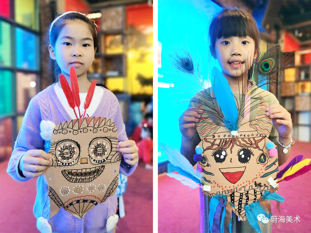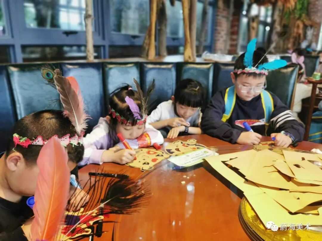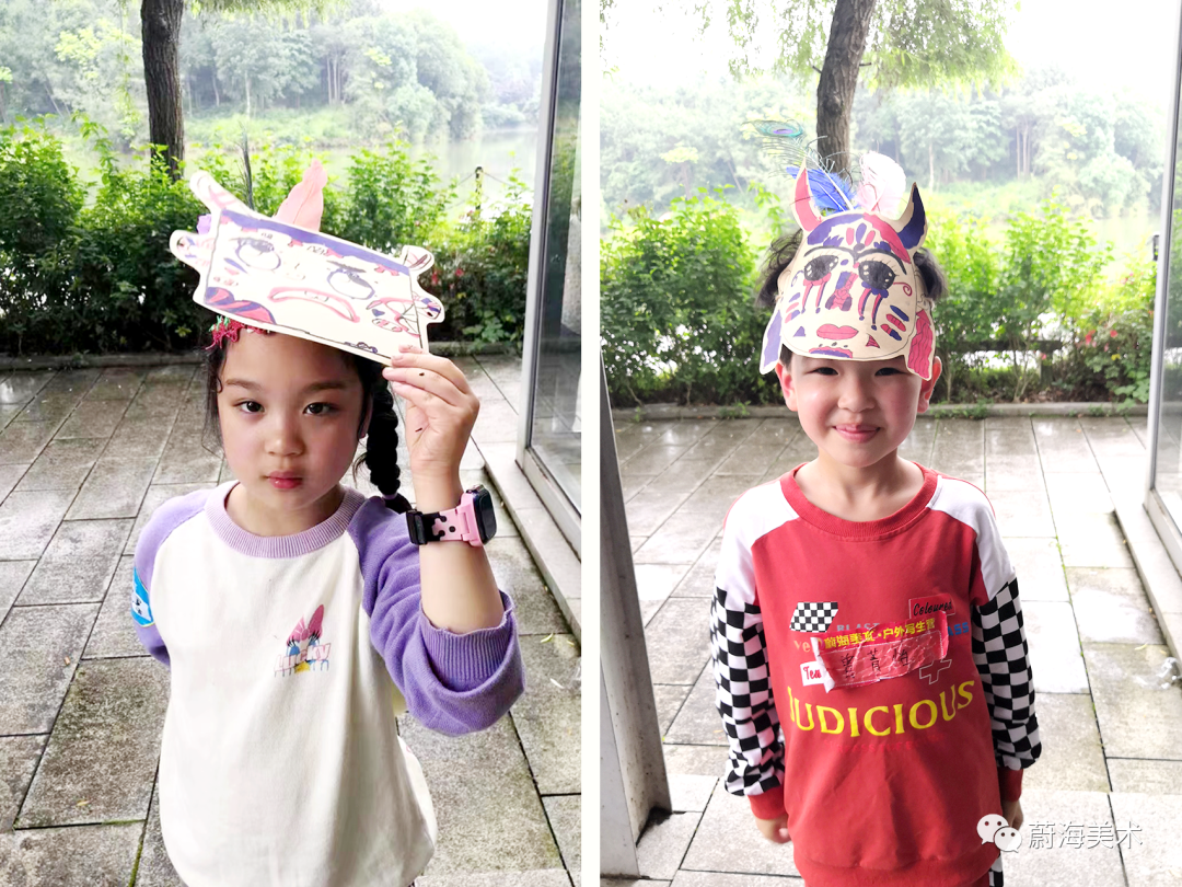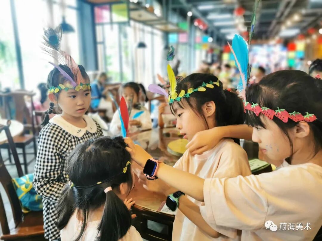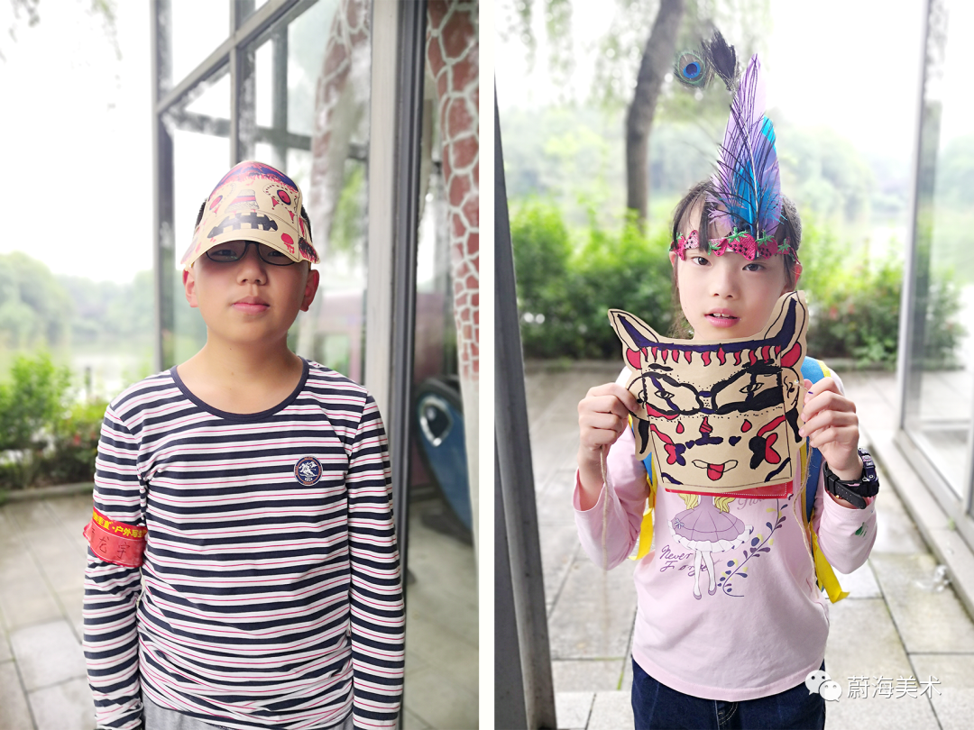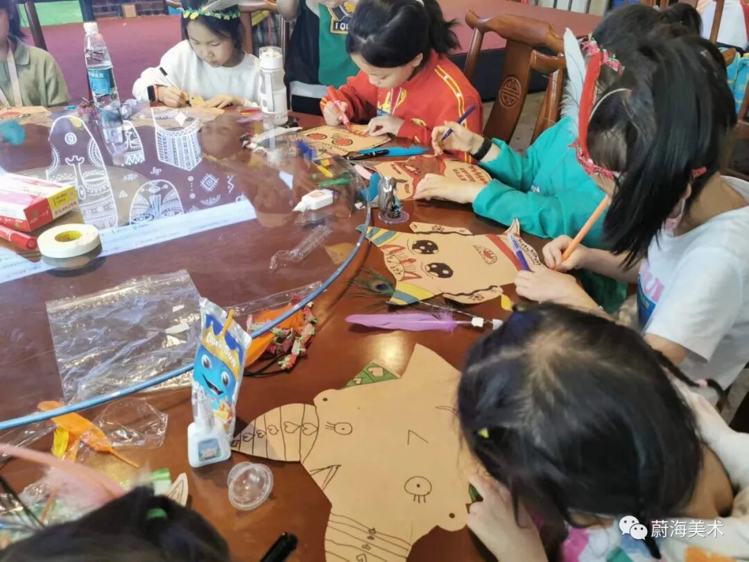 听完非洲大讲堂,孩子们开始给自己制作非洲特色手工头饰。