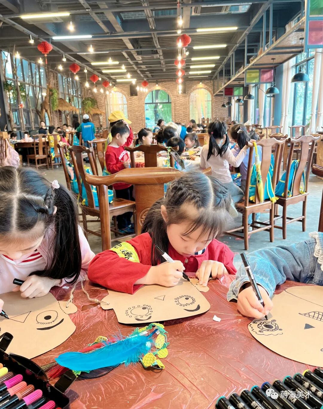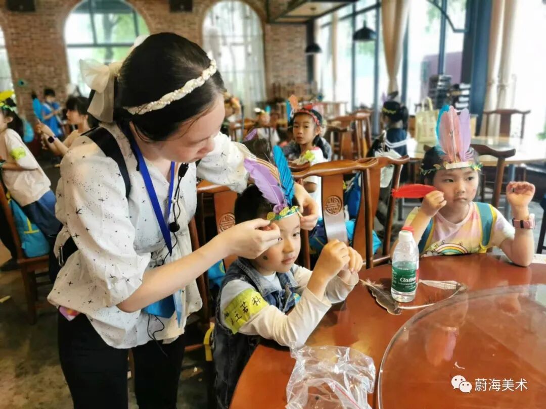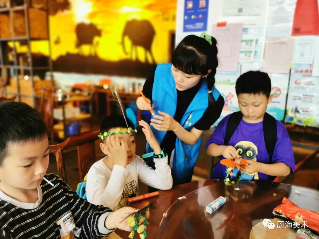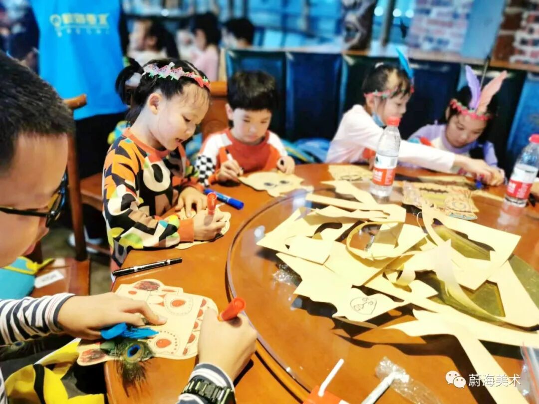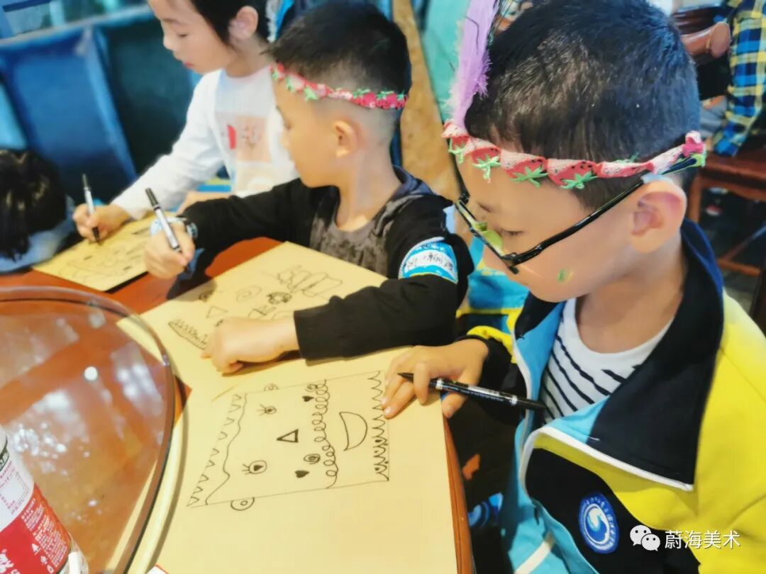 听完非洲大讲堂,孩子们开始给自己制作非洲特色手工头饰。