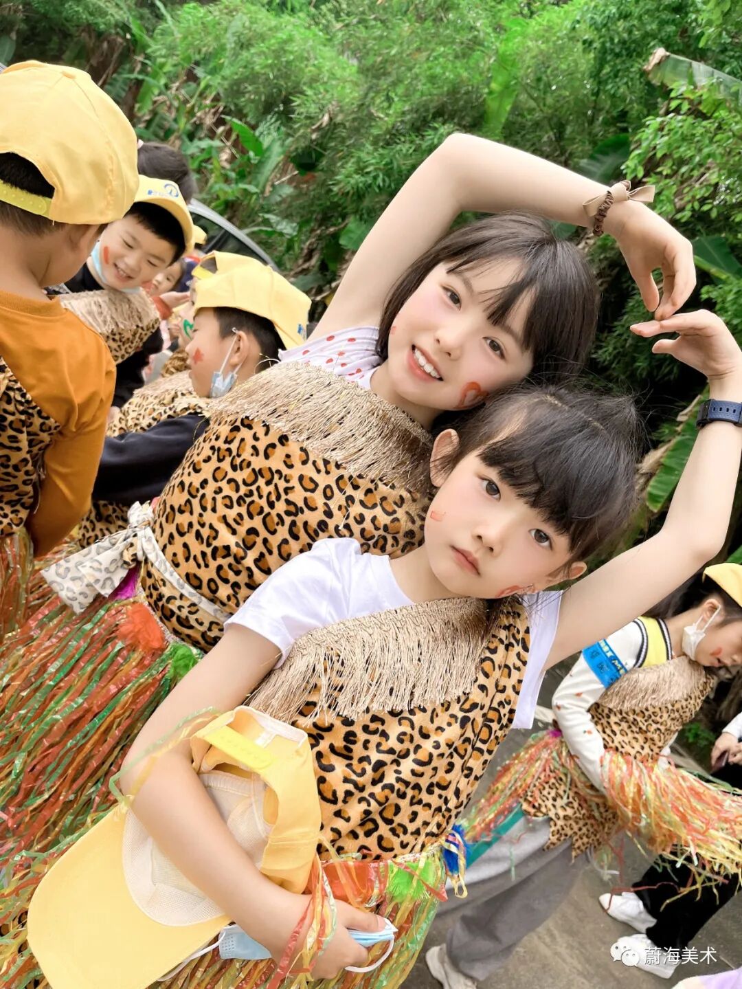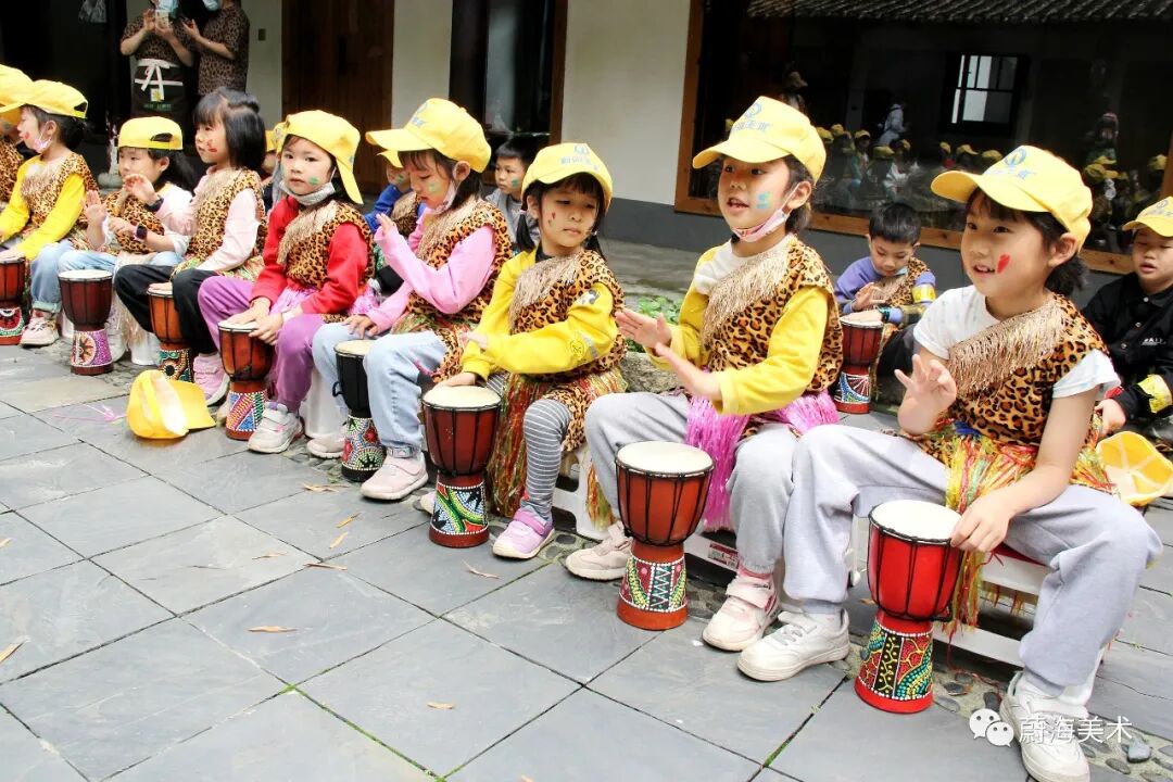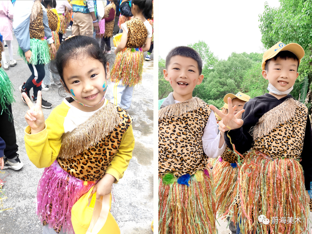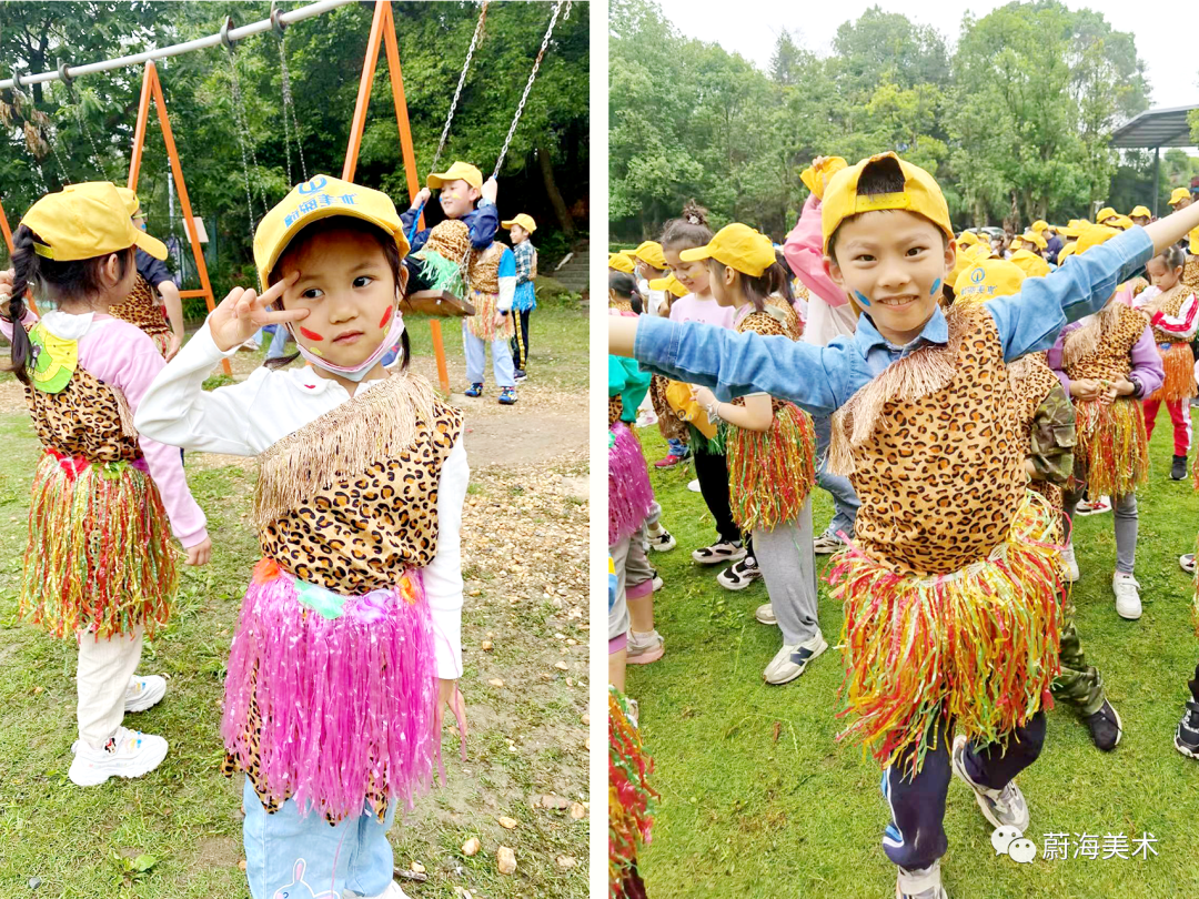 装扮好非洲人后孩子们跟随着非洲老师的步伐,