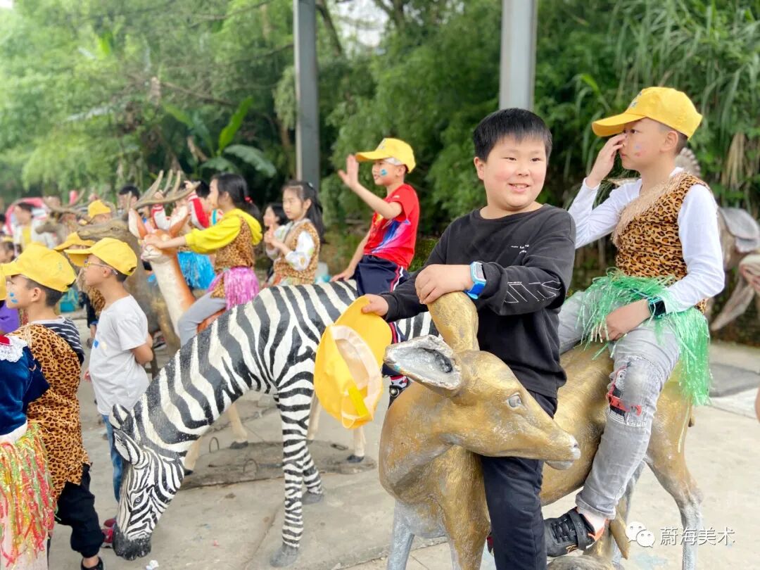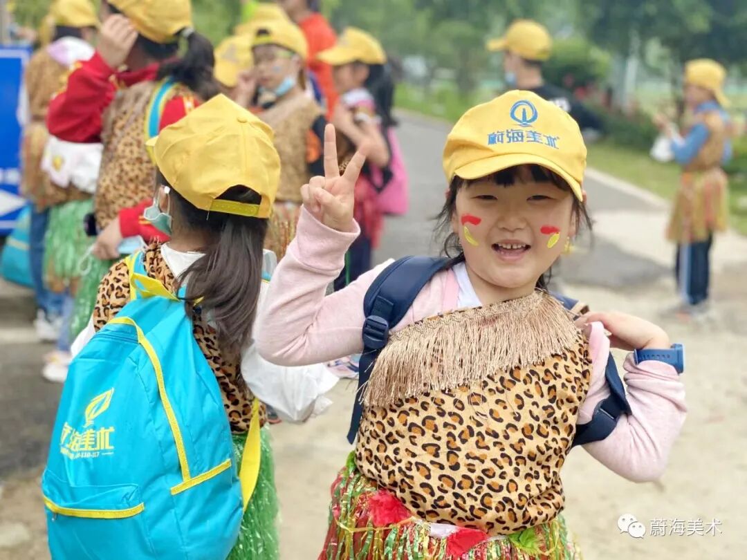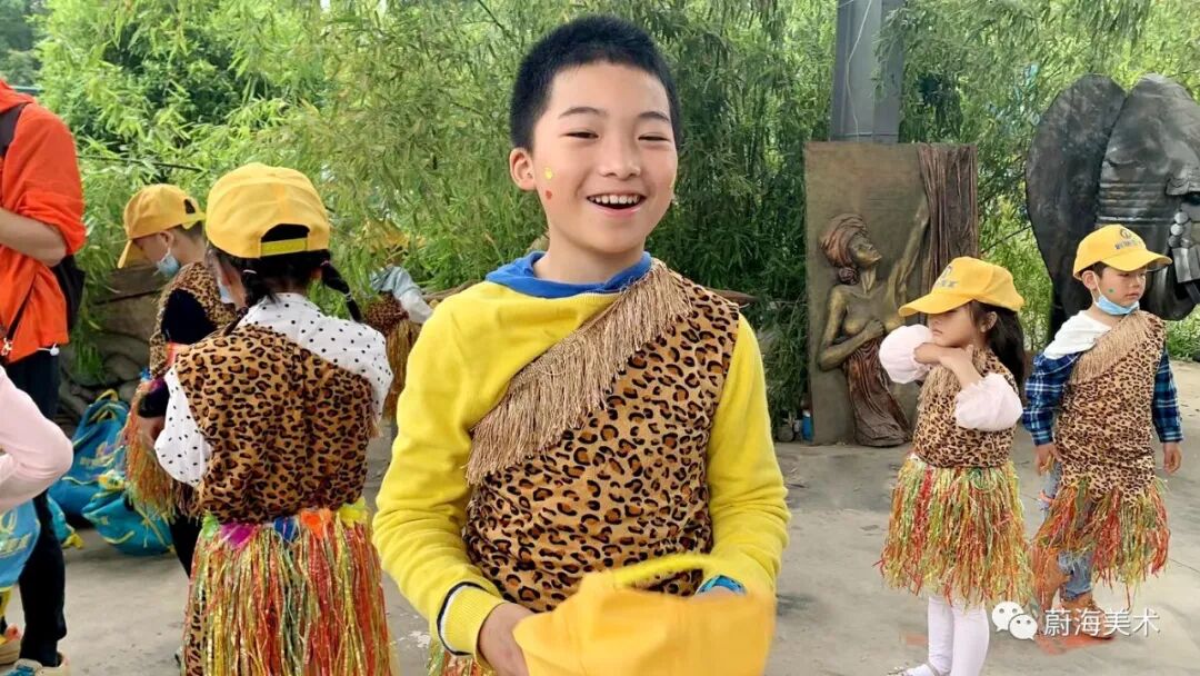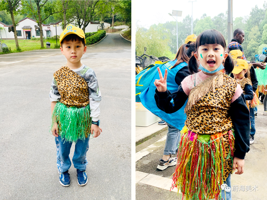 装扮好非洲人后孩子们跟随着非洲老师的步伐,