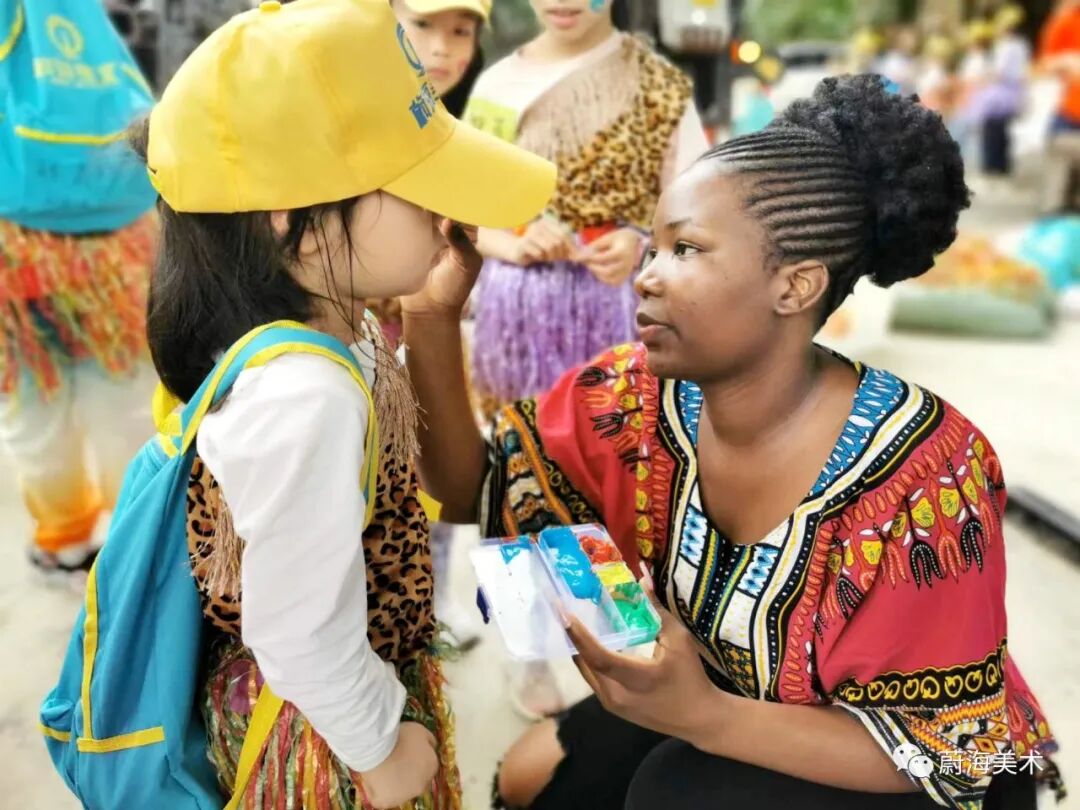 换非洲服,换好非洲服由非洲老师对孩子们进行脸部彩绘。