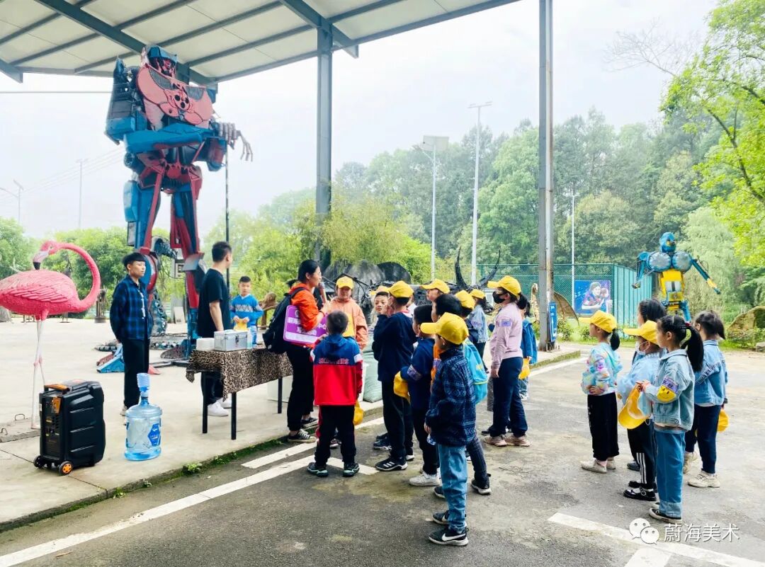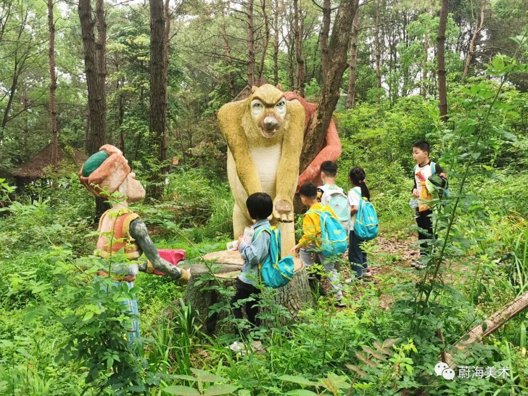 湘绣博物馆参观完后返回非洲园内看到了光头强、熊大、熊二的雕塑像,