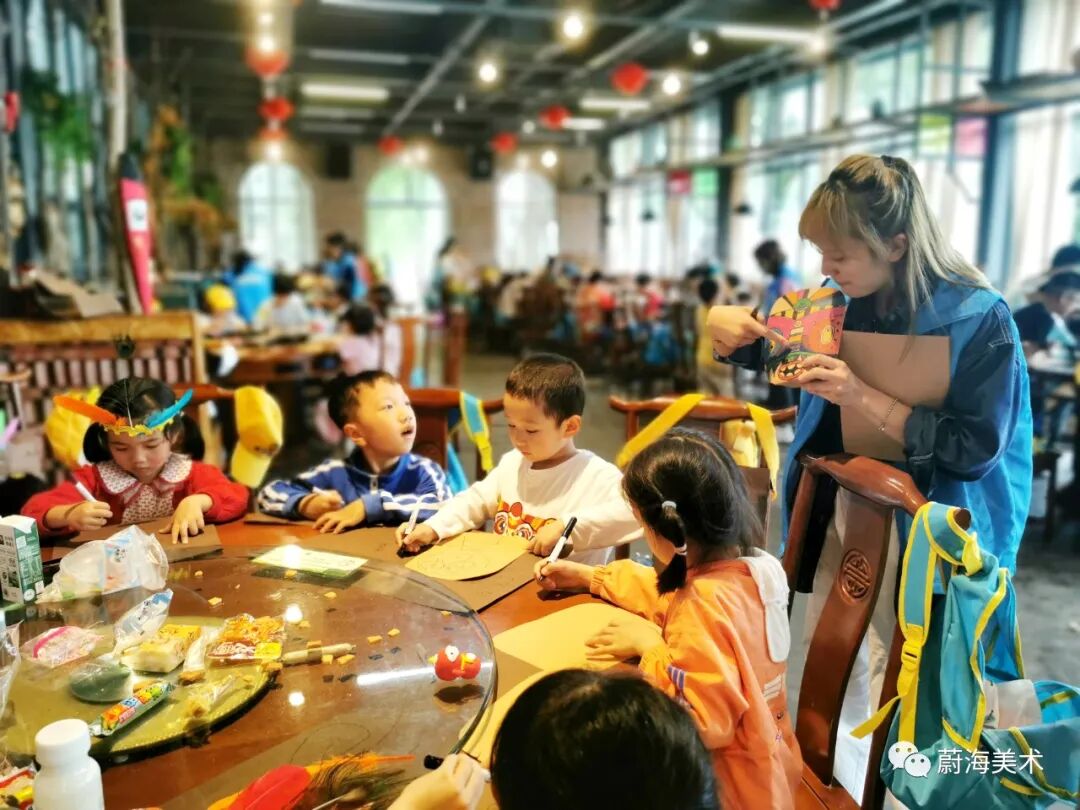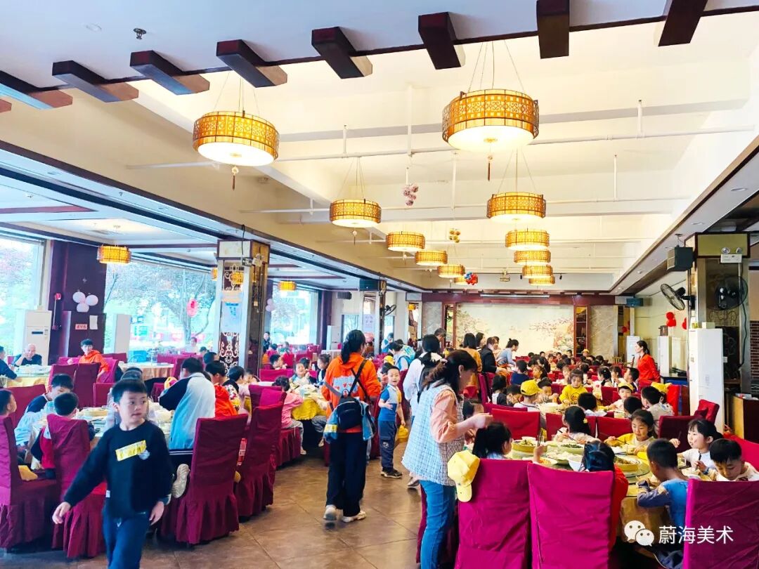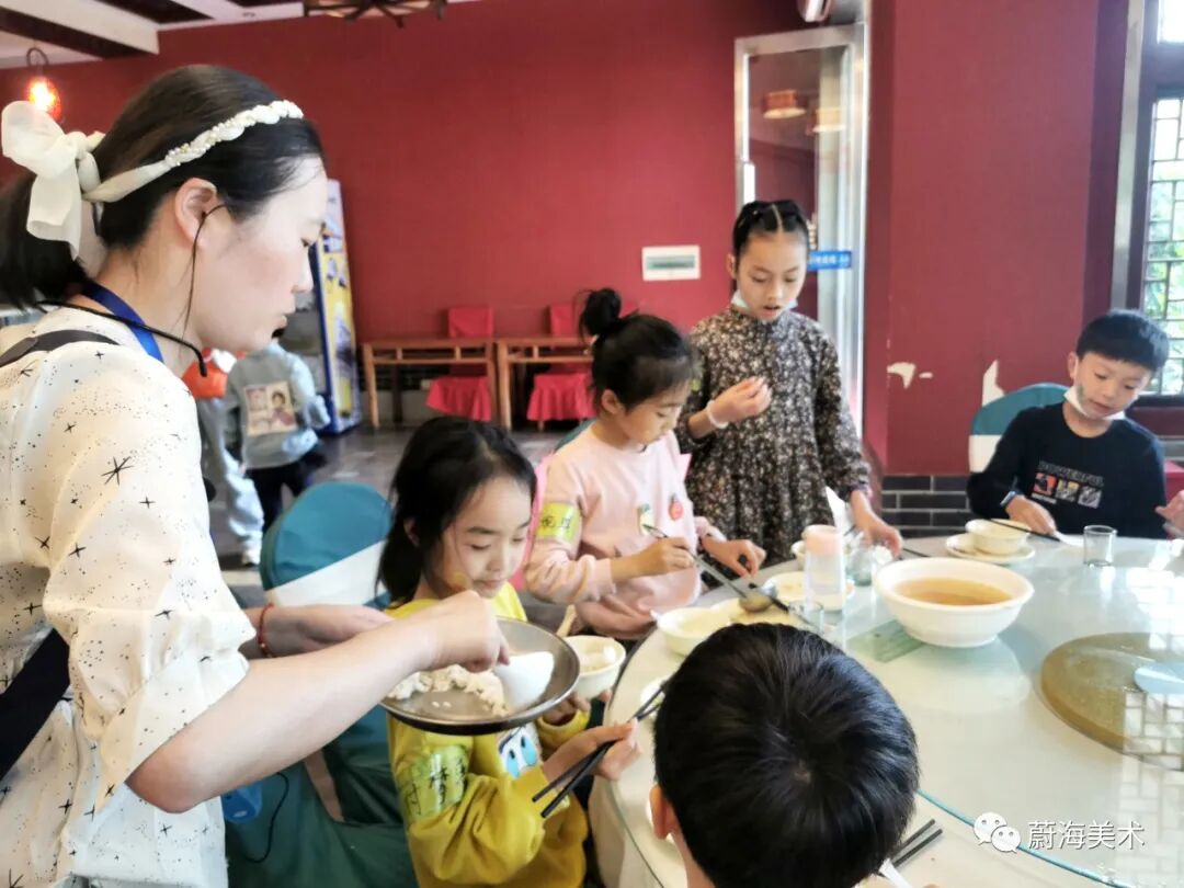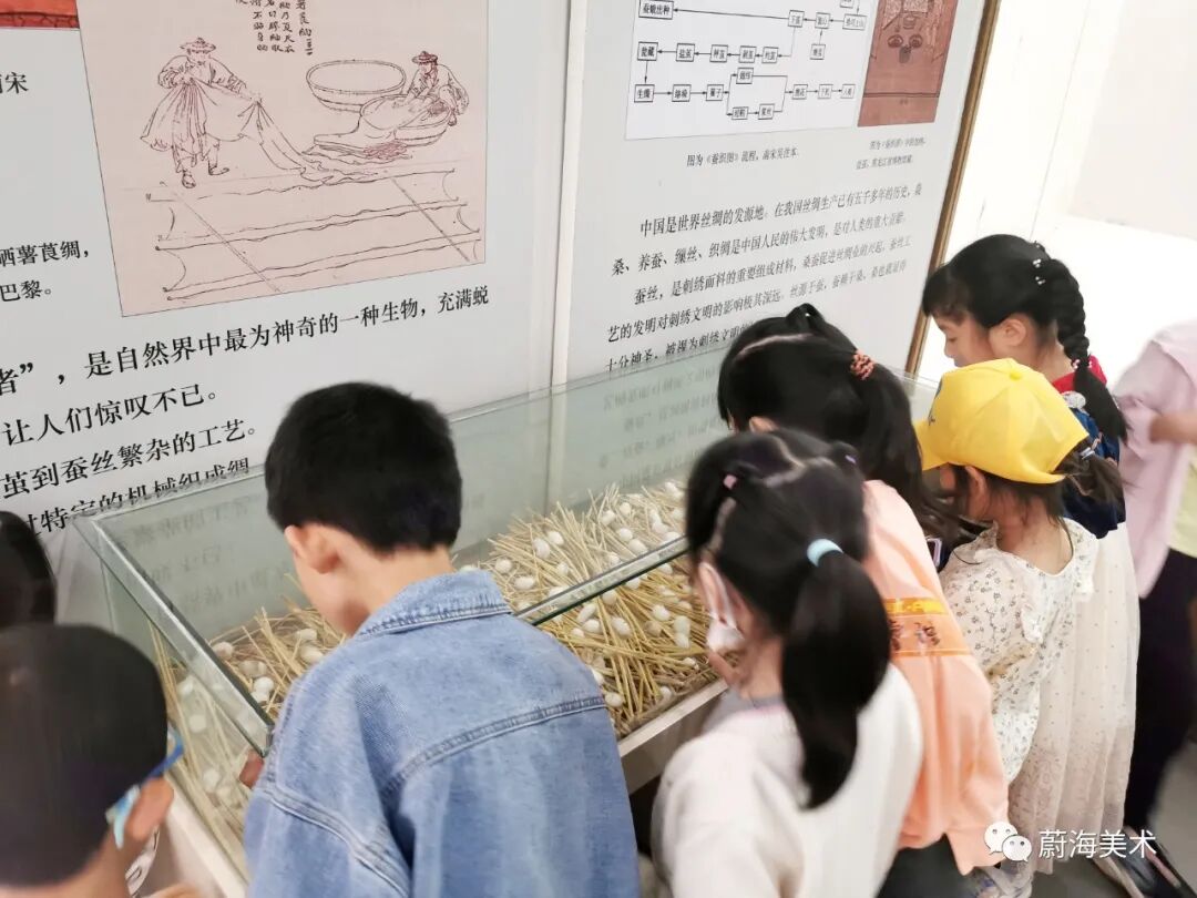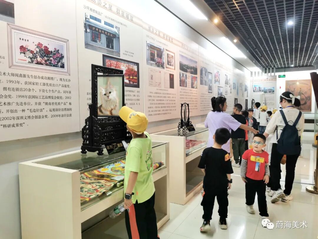 吃完饭休息时间老师带着孩子们参观了湘绣博物馆,
