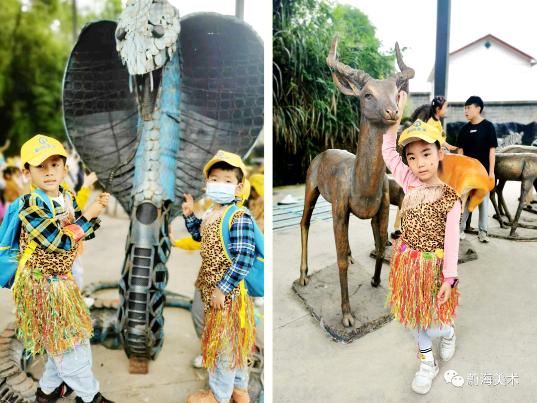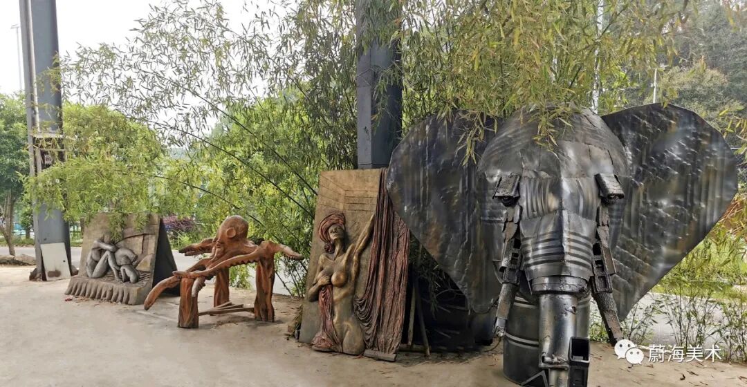 这些雕塑都是来自非洲的艺人用废弃的材料打造出一尊尊独特的金属雕塑,