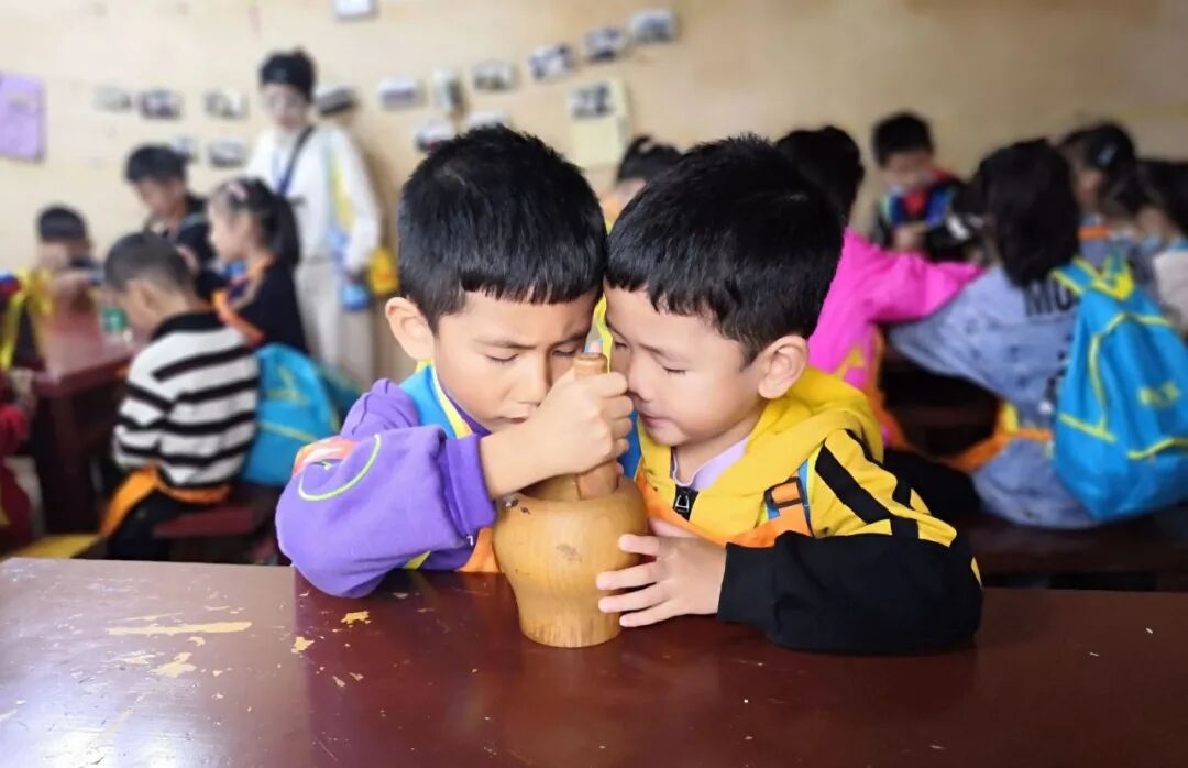 打稻在老师们的指导下,孩子们分单人、双人和多人三种方式进行。