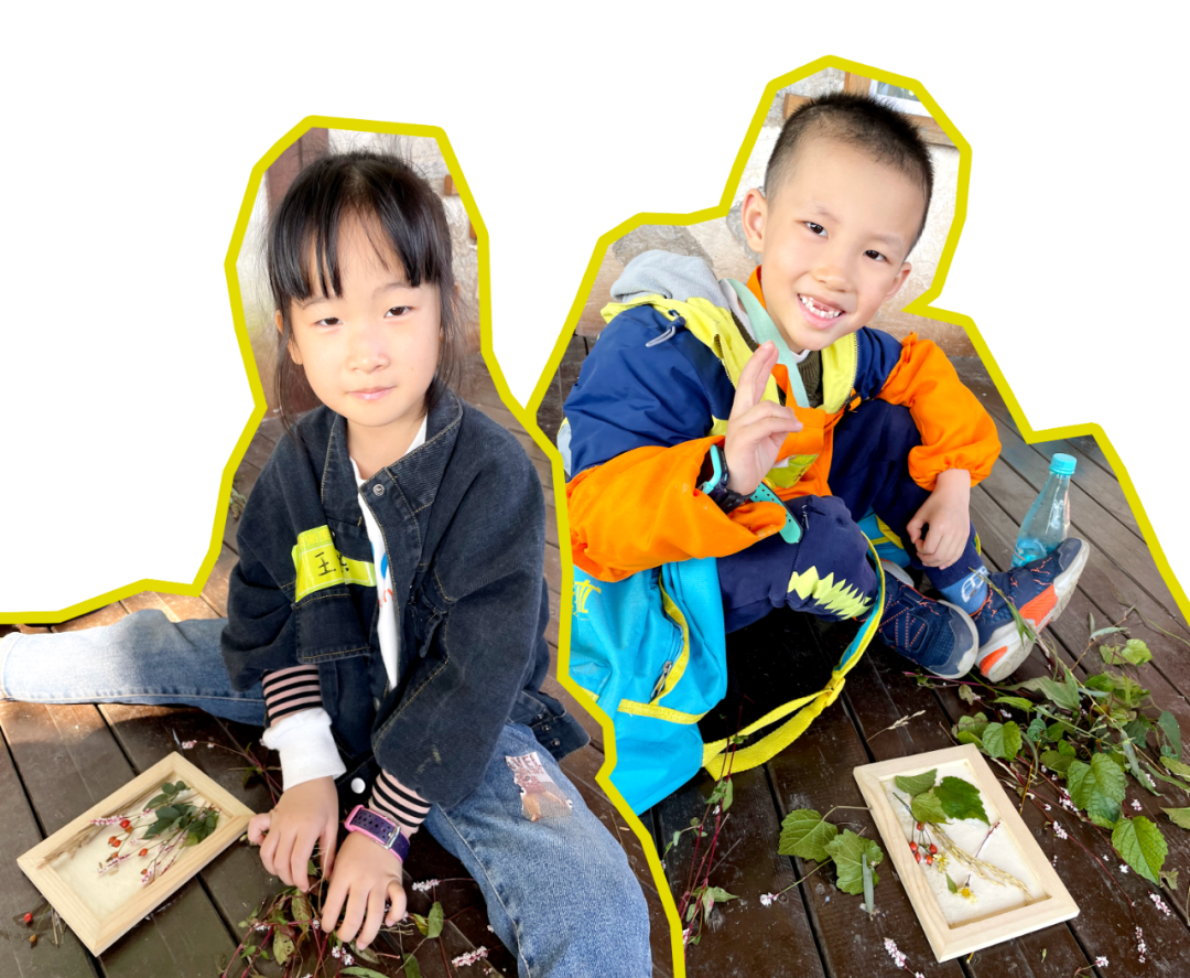 老师都很用心的在一旁指导,让孩子们发现大自然的美,